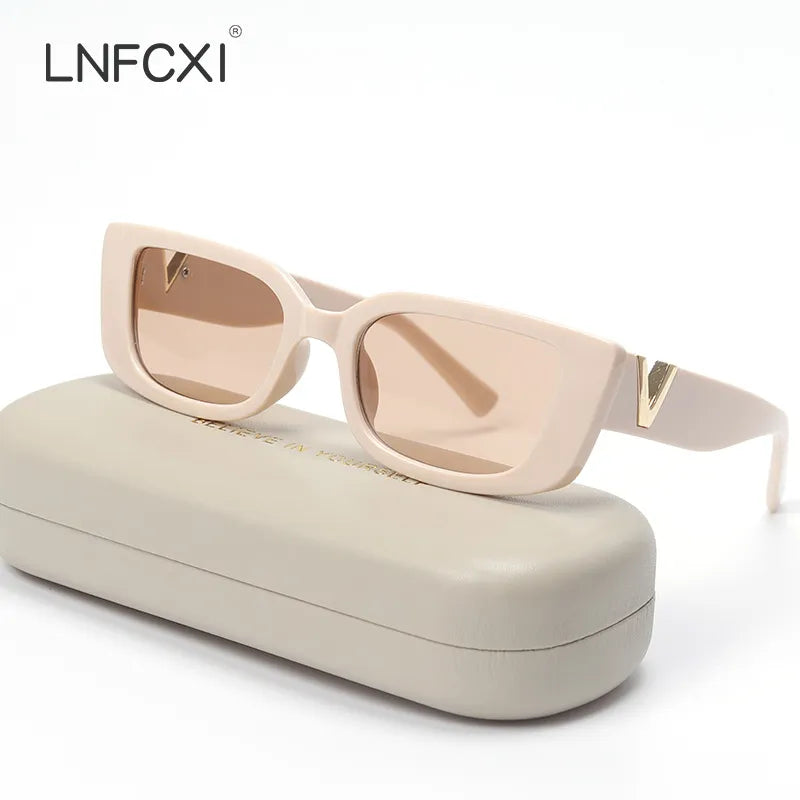 LNFCXI Retro Small Frame Cat Eye Sunglasses for Women Luxury V Sun Glasses Men Fashion Jelly Sunglasses with Metal Hinges
